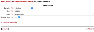 - Libellé : notez l'intitulé officiel défini dans le décret du 2 juin 1998