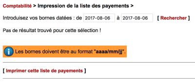 Si l'encodage des paiements se fait en temps réel, vous pouvez facilement contrôler la recette du jour en produisant cette liste. Notez la même date dans les deux bornes.