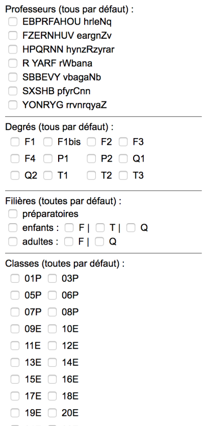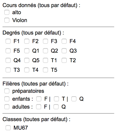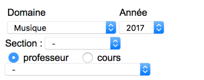 Ainsi, le choix d'un domaine, ou d'une année scolaire, ou d'une section, conditionne les contenus du menu professeurs et du menu des cours. Les choix sont bien sûr cumulables.