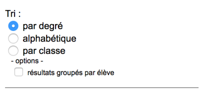 Le tri des curriculums se fait par degré, ou par ordre alphabétique d'élèves, ou par classe.