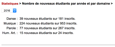 Lesahrweb compte le nombre de nouveaux élèves par domaine.
