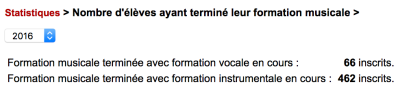 Nombre d'élèves ayant terminé leur formation musicale