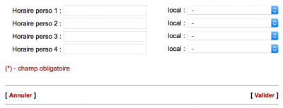 Dans cette 3e partie, vous définissez les horaires personnels du professeur, par exemple parce qu'il donne bénévolement une remédiation ou qu'il étudie son instrument. Il est important de renseigner les locaux occupés pour exploiter le module d'Occupation des locaux et remises de cours.