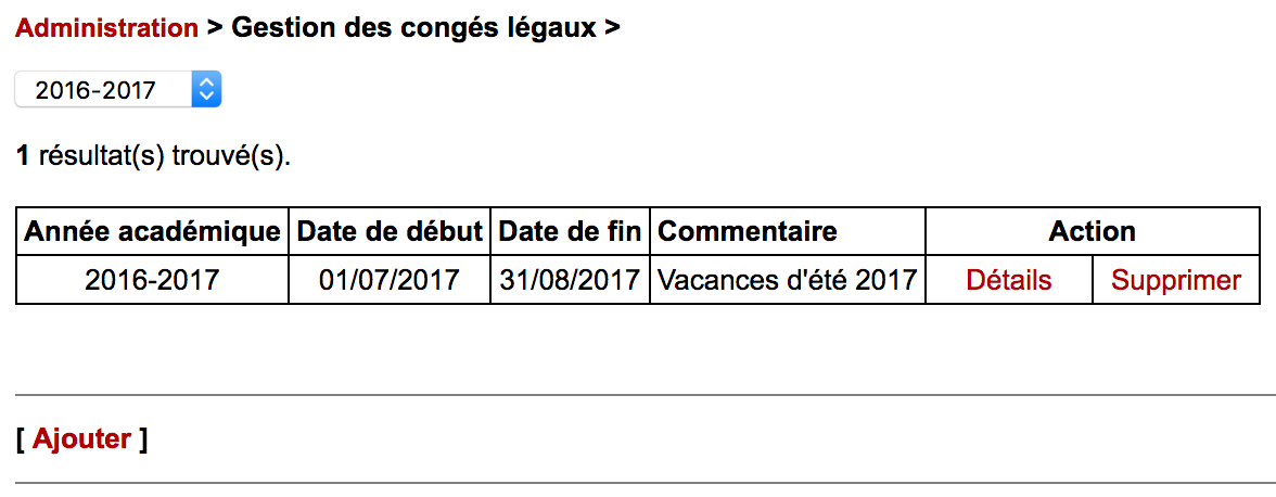 - Administration du système : gestion des congés légaux