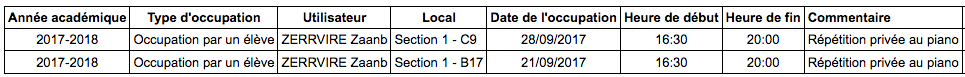 Occupation des locaux et remises de cours : Recherche d'un local disponible